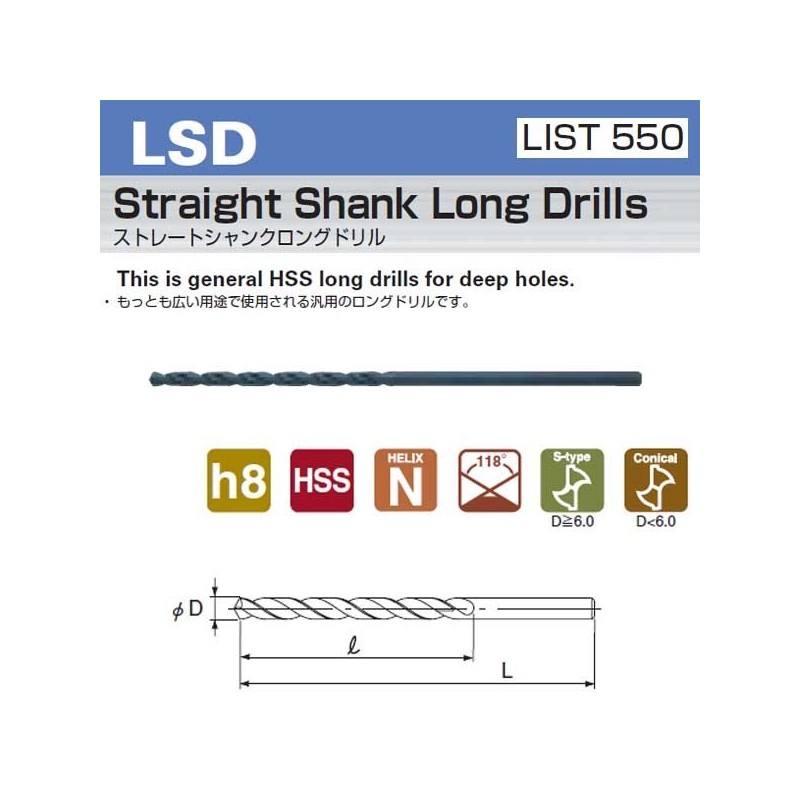 Diameter (Dc):1.0 Panjang Saluran (ℓ):40 Panjang Penuh (L):100 : This is general HSS long drills for deep holes, Material : HSS, Dia.Tolerance : h8, Point Angle : 118°